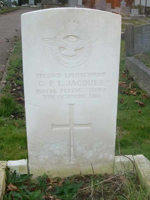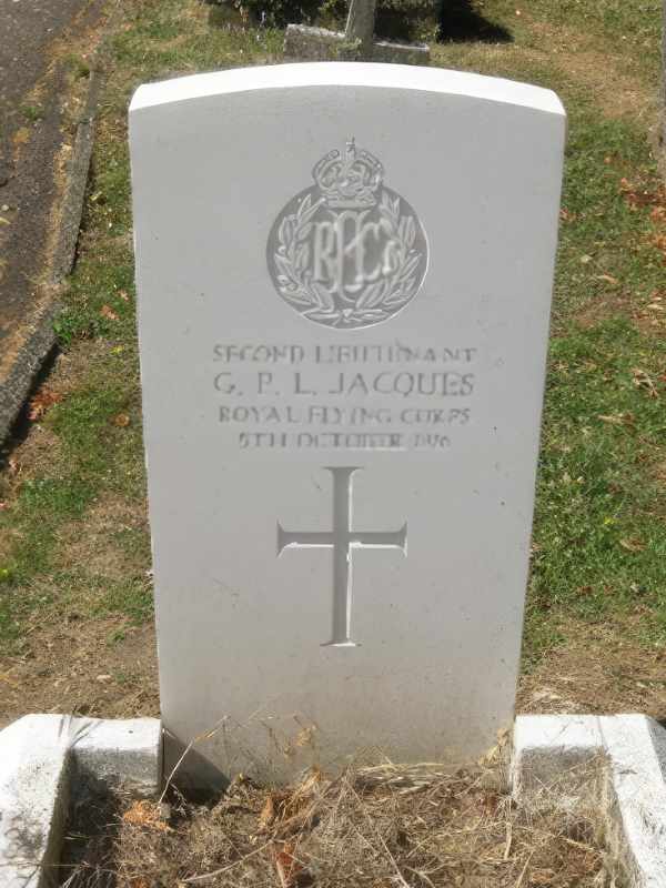 Jacques was in BE.2c No.4174 and Lucas in BE.2C No. 5389 during the fatal accident. The CWGC (Commonwealth Grave Casualty Archive), has Hampshire Aircraft Park as Lucas’ unit (there wasn’t such a unit – the Southern Aircraft Depot is the nearest possibility). It is likely that the collision occurred shortly after take-off on a training flight of BE.2c No 5389 from Farnborough, with BE.2c No 4174 (recorded as being with the CFS[Central Flying School] in July 1916) being the transport machine of Geoffrey Jacques.